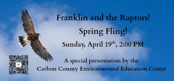 Join us as we welcome Franklin, expert handler from the Carbon County Environmental Education Center, and his incredible band of birds. Prepare to be amazed as these magnificent birds of prey demonstrate their unique hunting skills and natural behaviors. Learn fascinating facts about each species and discover the vital role they play in our ecosystem. This is a fantastic opportunity to connect with nature and experience the wonder of these powerful creatures firsthand.
